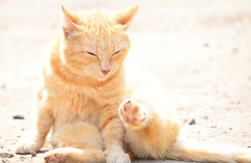 А этот рыжый готовится к ответственному занятию - мытью частей тела