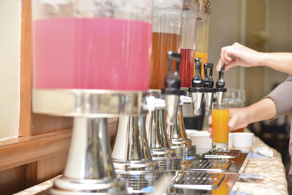 И только фруктов оказалось не так много, все-таки не в Таиланде живем. Зато в ассортименте было штук пять разных напитков из сибирских ягод - клюквы, облепихи, брусники.