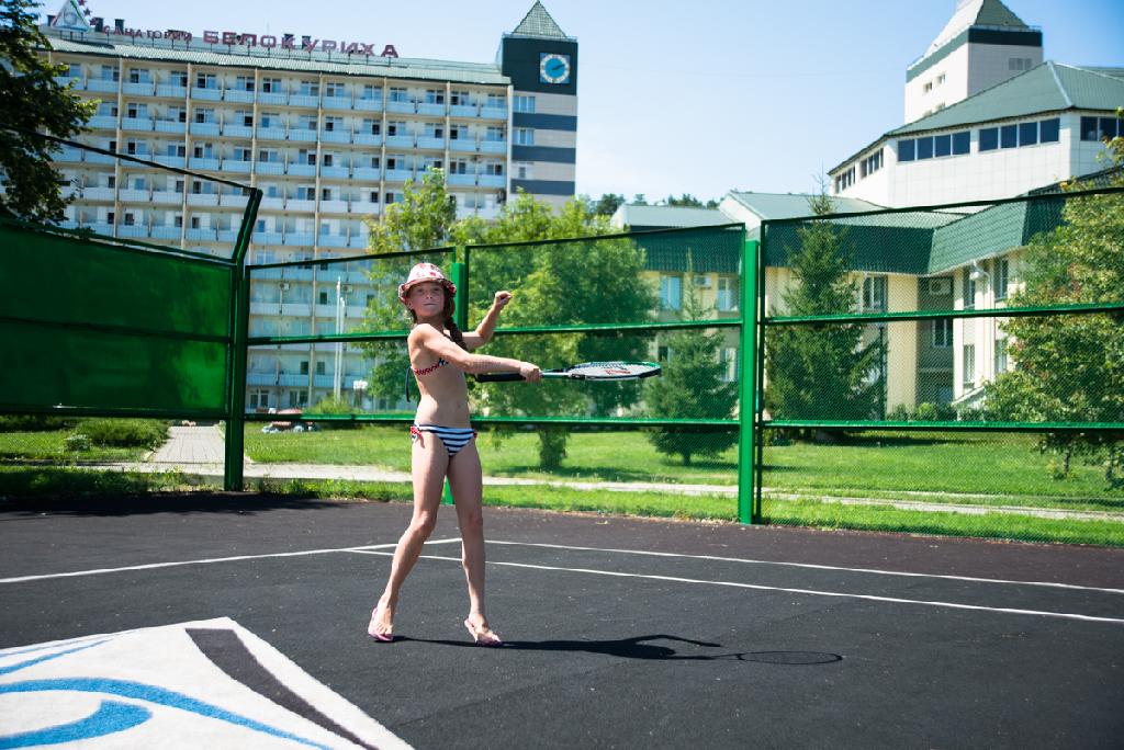Продолжаем гулять по территории санатория. Ух ты, теннисные корты! Игровое снаряжение, кстати, как и вход, бесплатно.