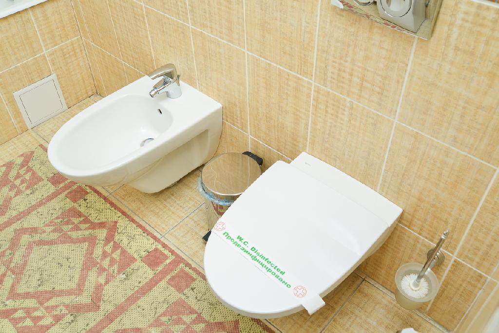 а в ванной комнате, помимо фена, есть стиральная машинка и биде: