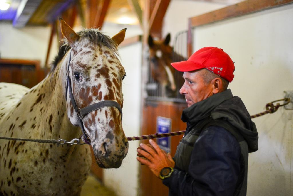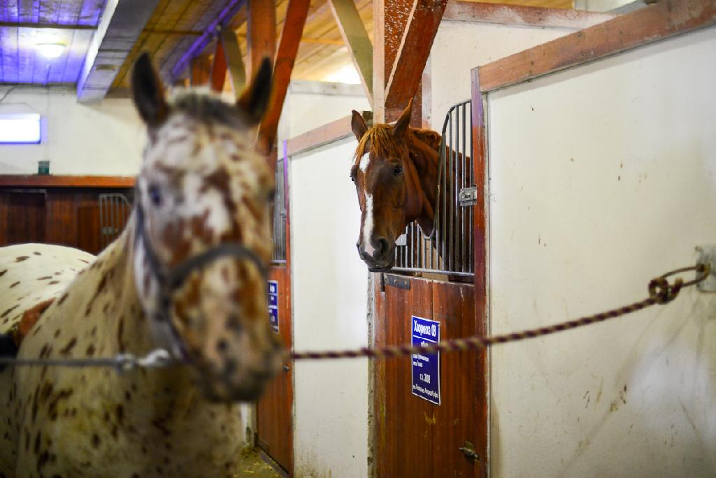 Знакомьтесь - это мерин, красоты необыкновенной, порода Алтайская, зовут его Ирбис. Свои ласково зовут его Барсиком. "Почему?" - спрашиваю я. "Ну ведь Ирбис - это снежный барс, отсюда и прозвище", - отвечает мне тренер, мастер спорта Андрей Владимирович. А вот и он собственной персоной, выводит Ирбиса из стойла.