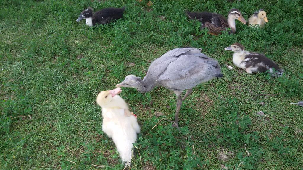 Малыш прекрасно себя чувствует в детском зоопарке "Сибирского подворья", очень общительный и ласковый. На вопрос "Как вы думаете, какой птицей он себя сознает?", работники подворья ответили: "Скорее всего, индюшонком. С индюшатами он проводит больше всего времени, это самые крупные из всех птенцы, хотя двухнедельному журавлю они всего лишь по пояс...".