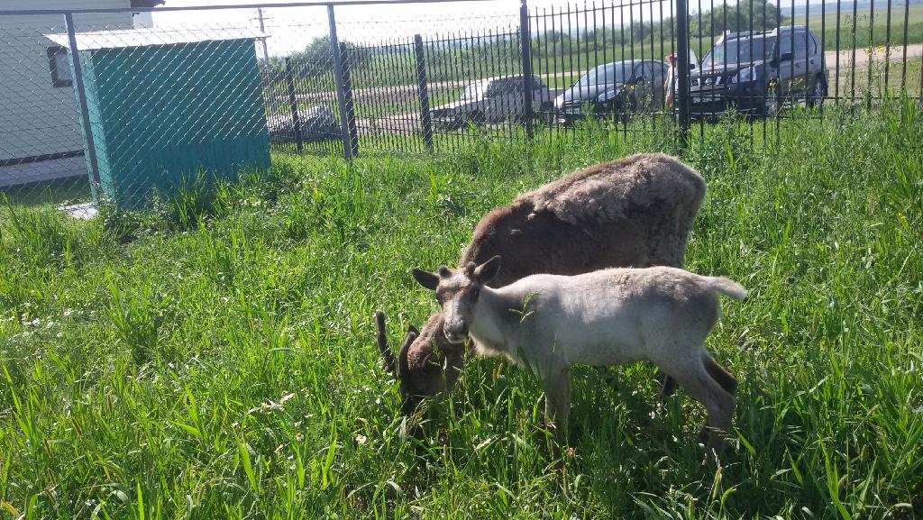 Рядом с "Сибирским подворьем" находится "Парк животных ледникового периода", в зоопарке которого детенышей не меньше. Вот мои любимые северные олени, семейство которых недавно пополнилось малышкой Маей. Счастливая семья на пикнике: