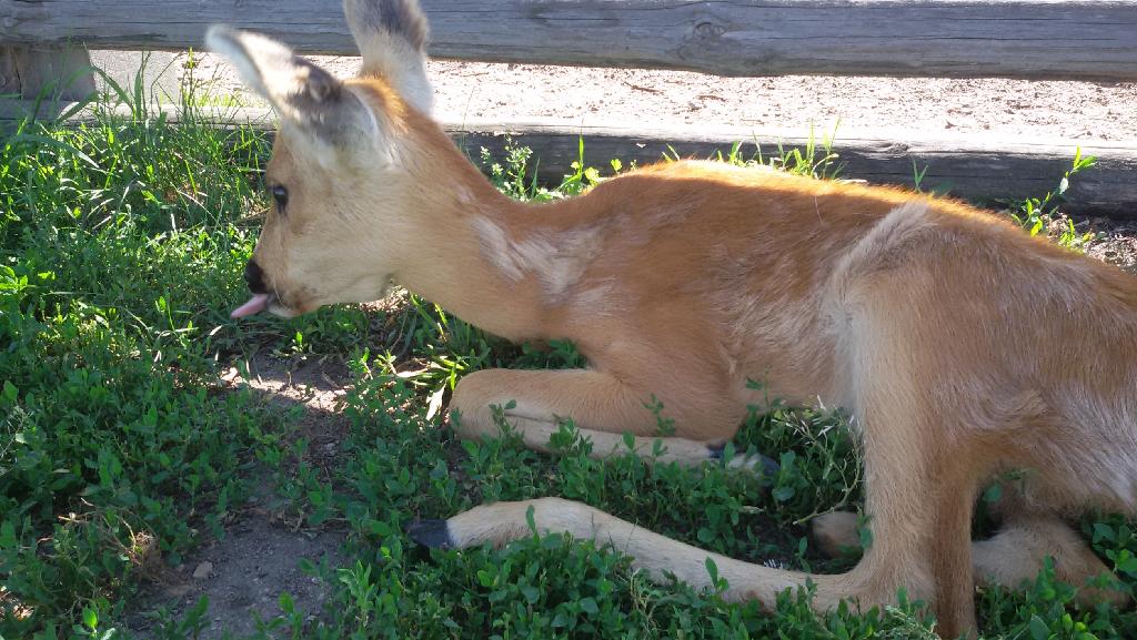 Знакомьтесь, это Бэмби. Бэмби - найденыш. Его нашли совсем малюткой, недалеко от Подворья (если вы не в курсе, вокруг Белокурихи водится много разных животных). Малыша запустили к пятнистым оленям, живущим на "Сибирском подворье", и теперь он считает их своими родителями. Хотя на самом деле Бэмби - сибирская косуля.