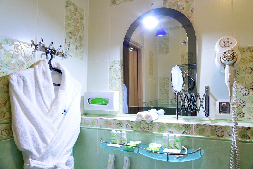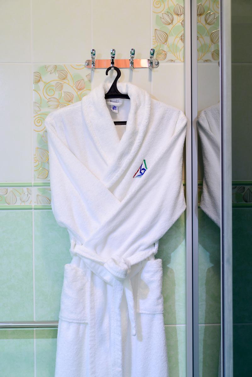 Следующий пункт мне особо приятен. Я бы только из-за этого выбрала номер, ведь далеко не все пятизвездочные гостиницы могут этим похвалиться. Речь идет о чудесных белоснежных махровых халатах с тапочками. Их удобно накинуть не только после душа, но и после водных процедур в санатории или посещения спа-центра...