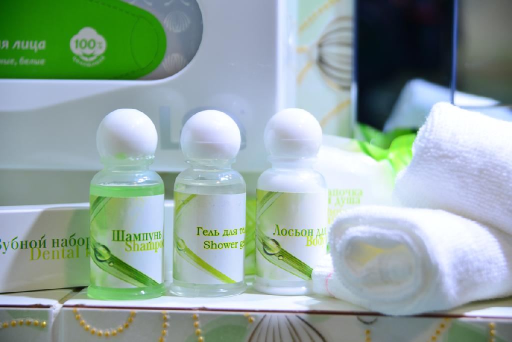 А в санузле дополнительно установлен диспенсер для бумажных салфеток, расширен набор для душа - гель, шампунь, лосьон для тела. И даже зубная паста с щеткой есть! Такой большой набор я редко где встречала, хоть за границей, хоть в российских гостиницах...