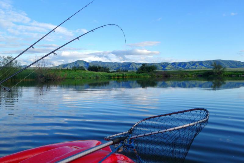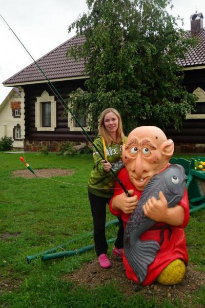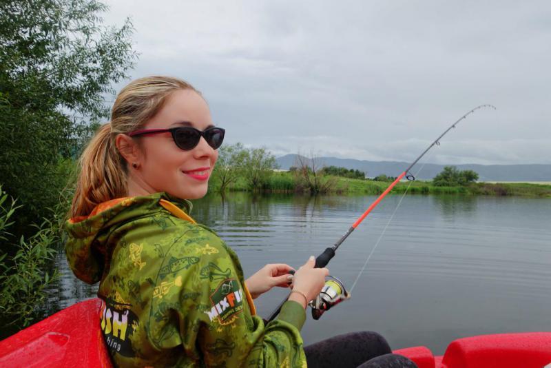 Озеро в Простоквашино решили исследовать на катамаране, на такой технике мы рыбачили впервые, не очень удобно, но забавно. Ловили на вертушки и резину. Рыбу нам разрешили выпускать, кроме щук. Пришлось импровизировать, подсак превратился в садок...