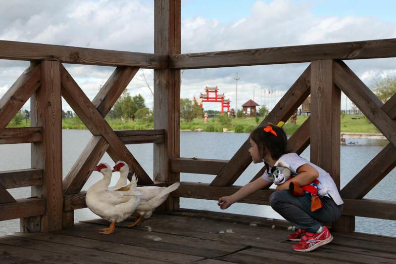 Неподалёку наткнулись ещё на один водоём. Рыбаков не видели и отдыхающих тоже... Это так называемый "парк животных ледникового периода", но динозавров там нет ... а вот мелкой тут понравилось...