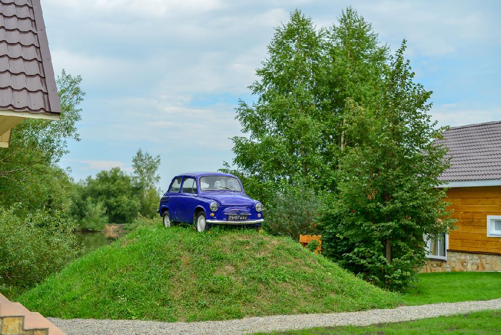 Легендарное авто из мультика про Простоквашино переместилось на пригорок, где раньше стояла беседка.