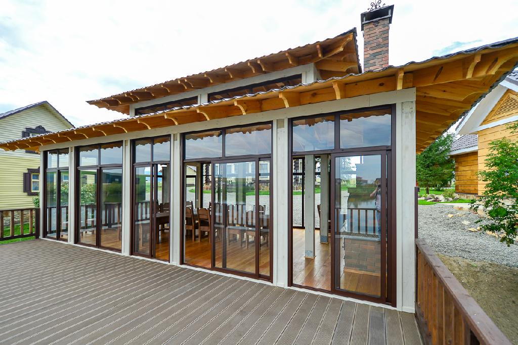 С обратной стороны беседки, в сторону водной глади, оборудована большая терраса. Здесь тоже можно расположить столики, либо использовать как зону отдыха.