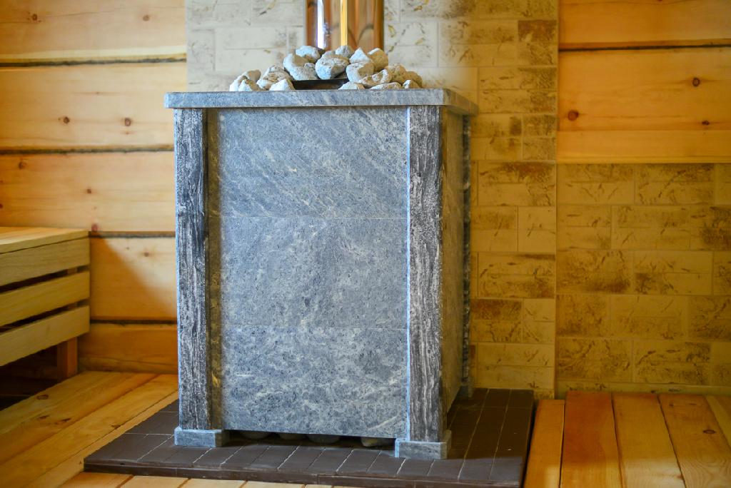 Печь выполена по индивидуальному проекту, облицована мрамором, со специальными камнями (даже с Байкала есть, как мне сказали!)