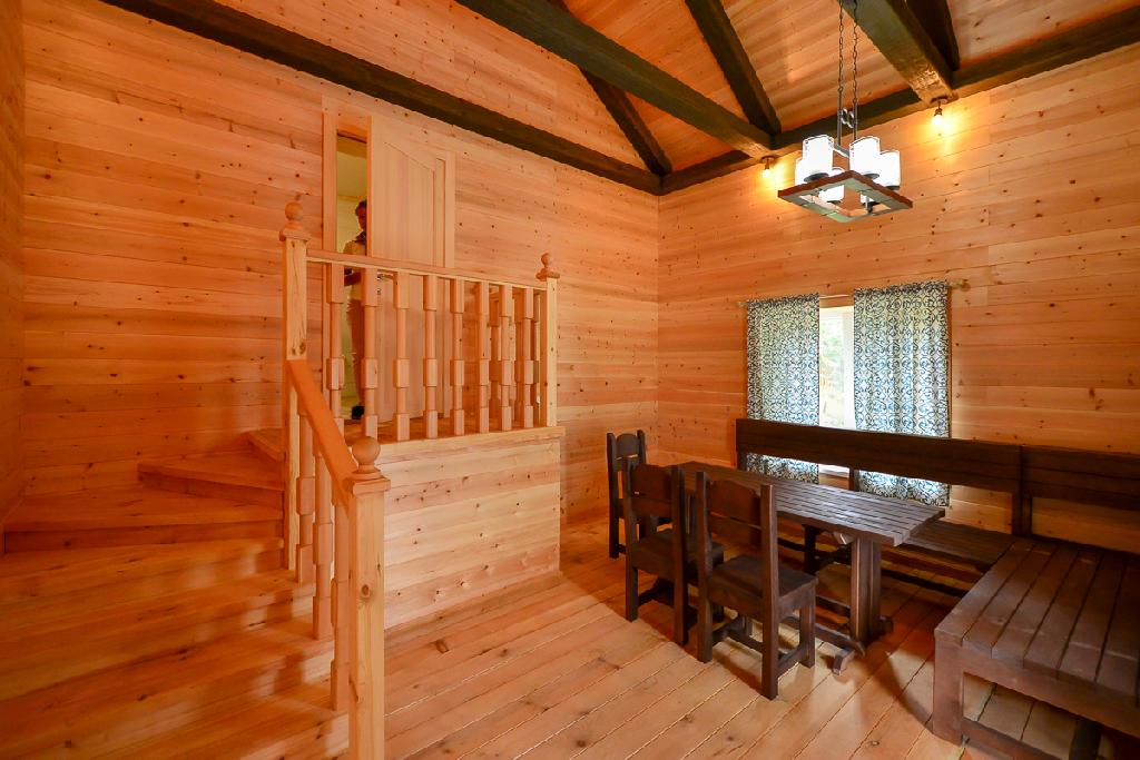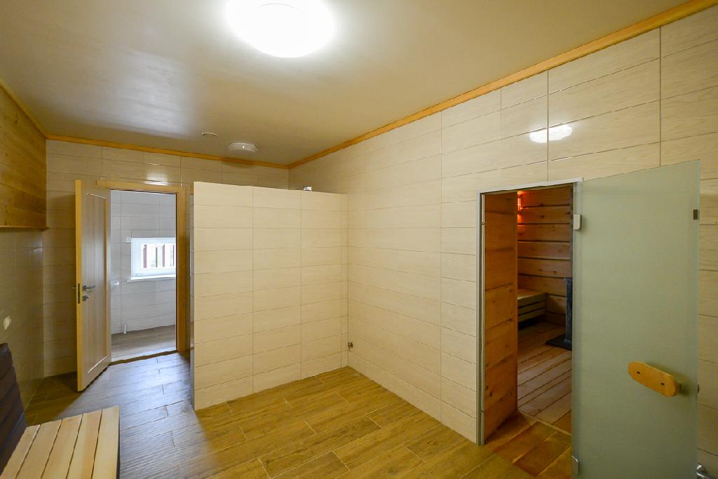 Запах свежего кедра приводит меня в баню - просторную, с оригинальными деталями.
