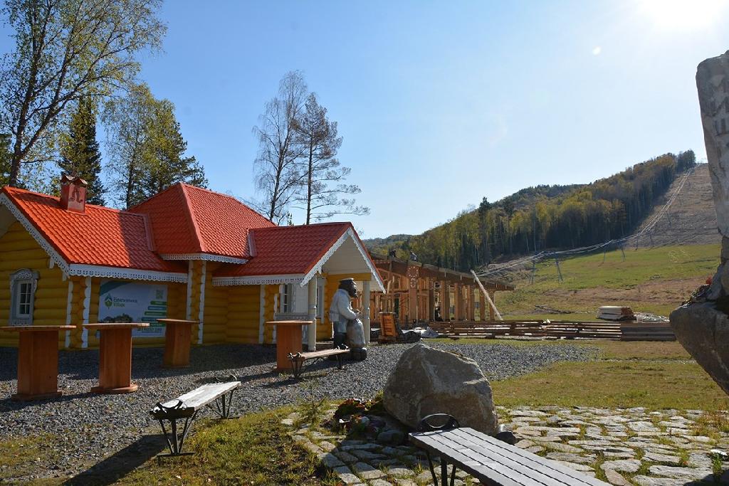 Продолжается строительство сервисного центра на первом горнолыжном комплексе «Мишина гора». Здесь будет работать прокат горнолыжного оборудования, раздевалки и паб с террасой.