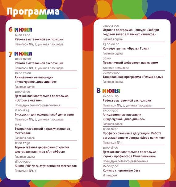 Как и обещала, собрала для вас самую интересную и полезную информацию по фестивалю напитков «АлтайФест», который стартует уже в конце этой недели и будет идти три дня с 6 по 8 июня на ТРК «Сибирское подворье» (вблизи Белокурихи). Ниже - программа фестиваля, площадки для размещения гостей, информация по трансферу и многое другое).