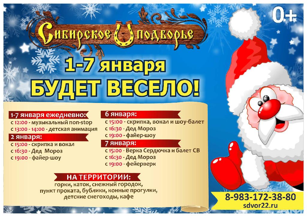 Веселье новогодней ночи продолжится на "Сибирском подворье", переместившись в окрестности Белокурихи. Тут нам обещают нон-стоп с 1 по 7 января!