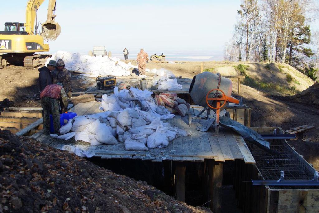 Именно там сейчас трудится бригада плотников-бетонщиков Евгения Тырышкина. Он в компании «Курорт Белокуриха» с 2001 года, сейчас занимает должность начальника ремонтно-строительного участка. Но на Мишиной горе больше выполняет функции прораба. Его бригада осуществляет бетонные работы, изготавливает щиты опалубки, вяжет каркас из арматуры, готовит бетон и заливает его в опалубку.