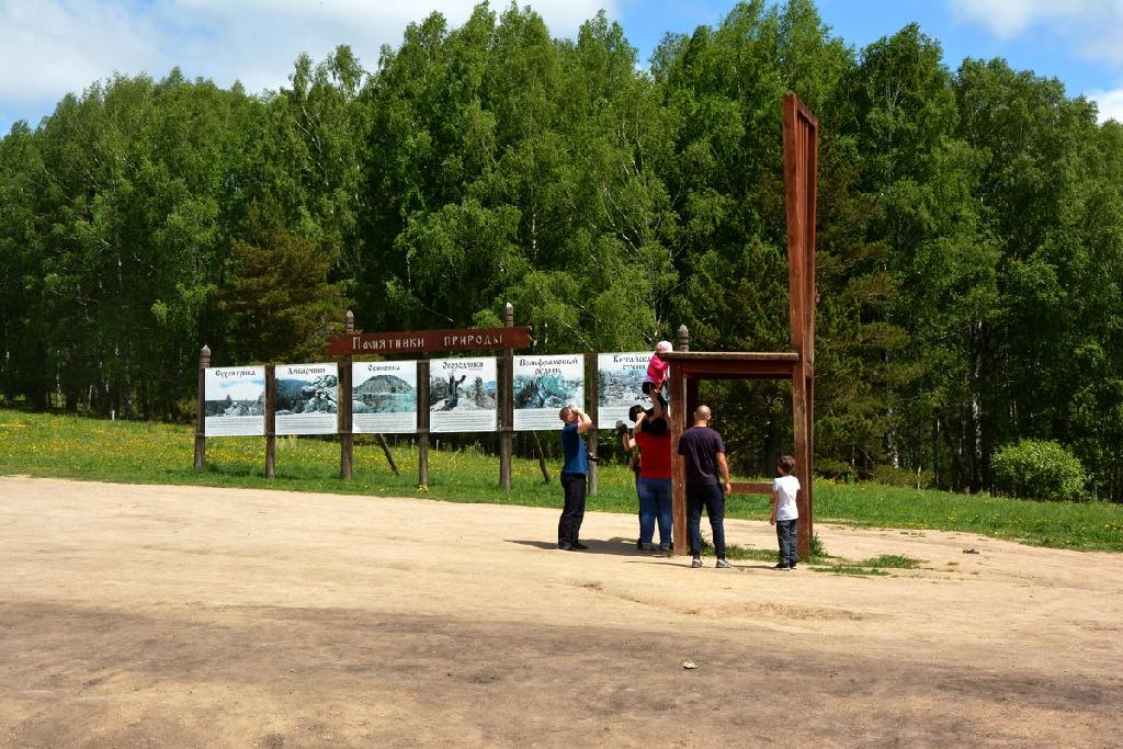 Далее - музей под открытым небом на месте, где в годы войны работал Белокурихинский вольфрамовый рудник. Недавно он пополнился памятной плитой в честь тружеников, которые добывали здесь в сложнейших условиях необходимый для обороны страны металл. Тут постоянно останавливаются туристы, дети и внуки тех, кто здесь работал.