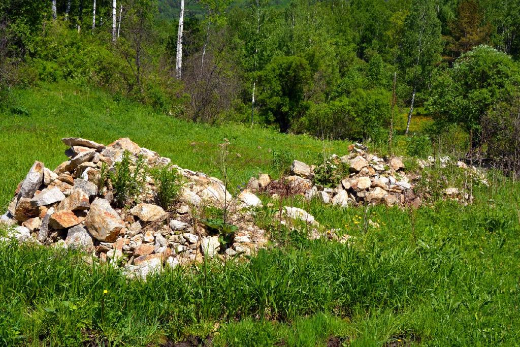 А вот и остатки поселения, где жили труженики вольфрамового рудника. Сейчас о том, что здесь находились населенные пункты Осиновка и Сосновка напоминают лишь вот такие курганчики.