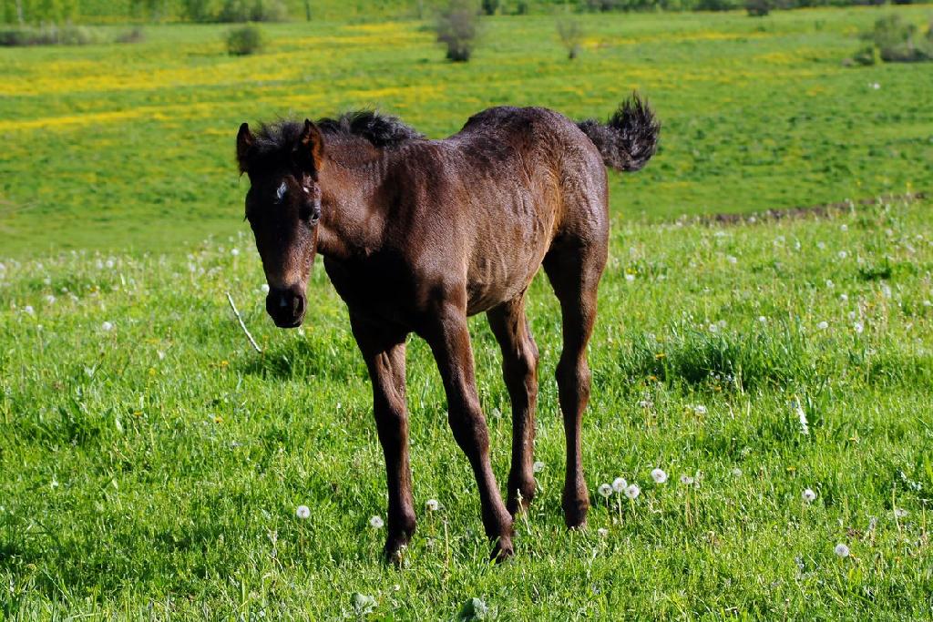 На холмах пасутся коровы, деловито ходят среди них кони.